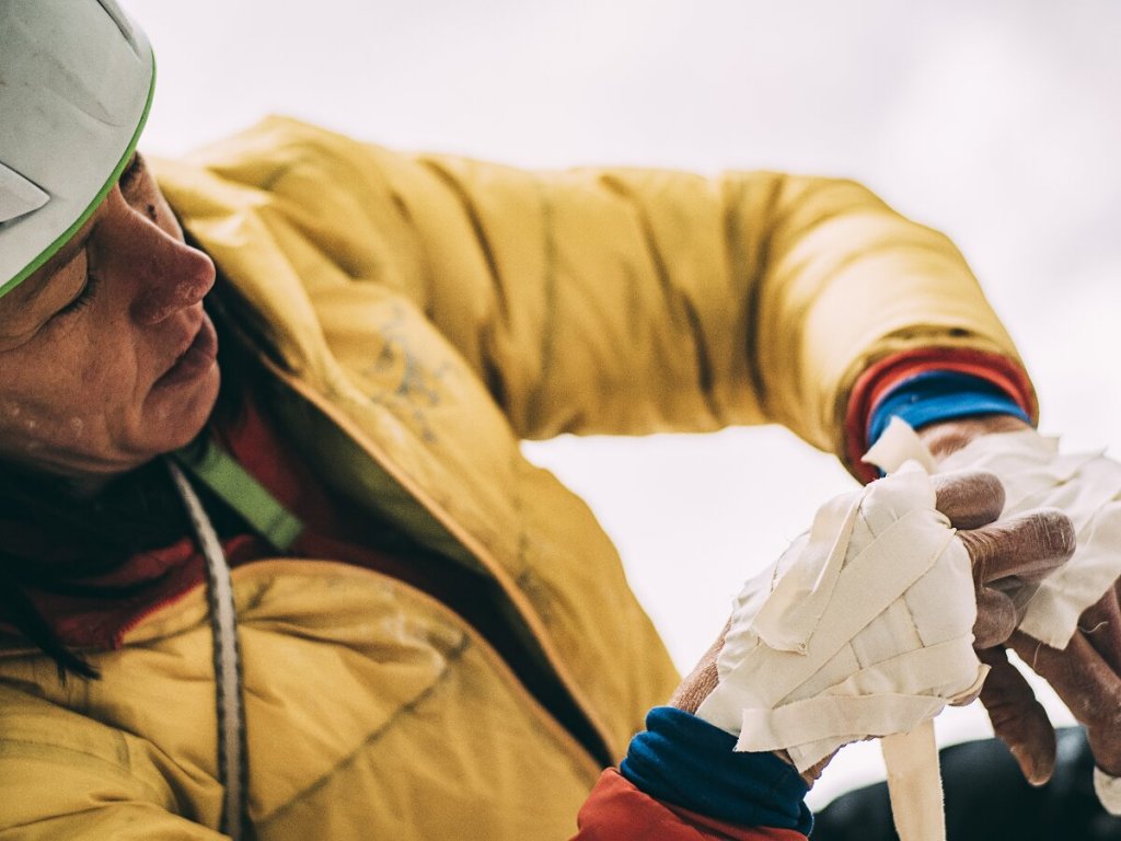Ines Papert preparing to climb in Torres del Paine (c) Thomas Senf