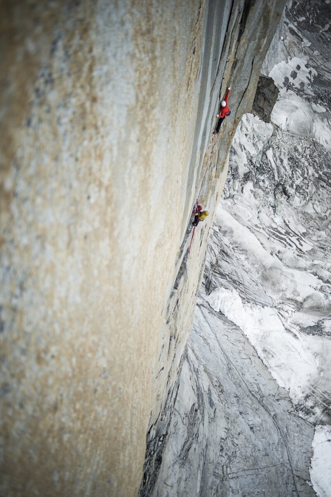 Ines Papert climbing pitch 15 of the route Riders on the storm in Torres del Paine (c) Thomas Senf
