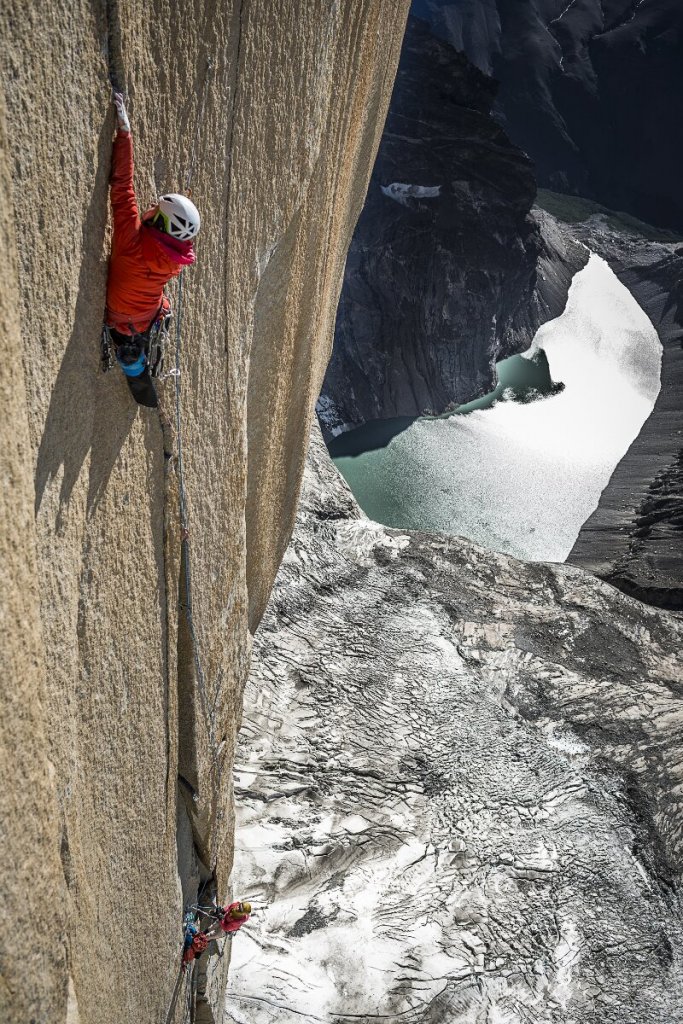 Ines Papert climbing pitch 23 of the route Riders on the storm in Torres del Paine (c) Thomas Senf