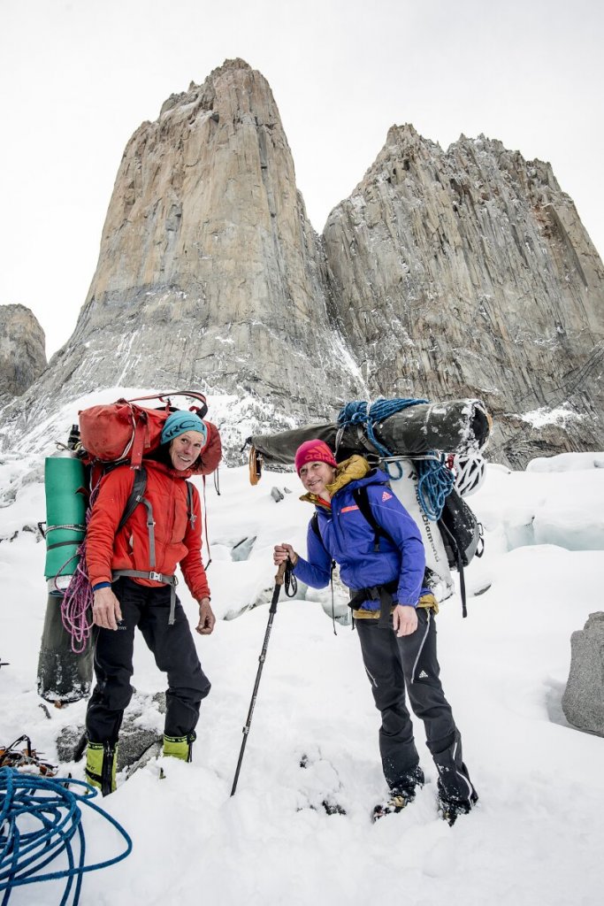 Ines Papert and Mayan Smith-Gobat descending after they have climbed the route riders on the storm in Torres del Paine (c) Thomas Senf