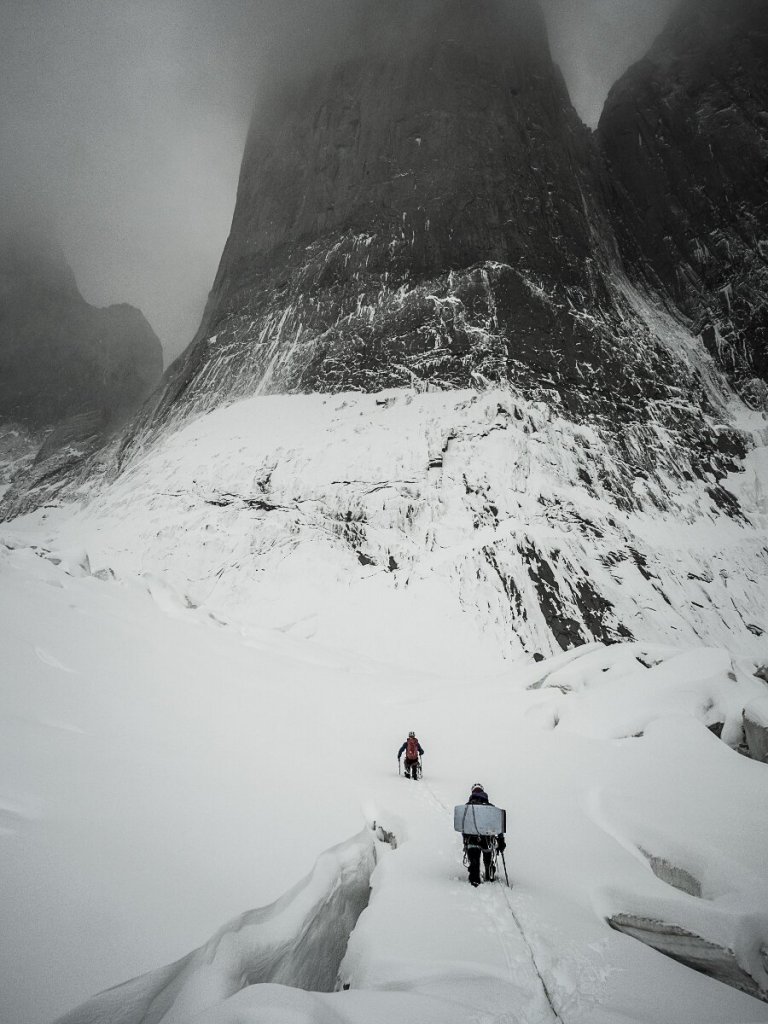 Ines Papert and Mayan Smith-Gobat approching the route riders on the storm in Torres del Paine (c) Thomas Senf