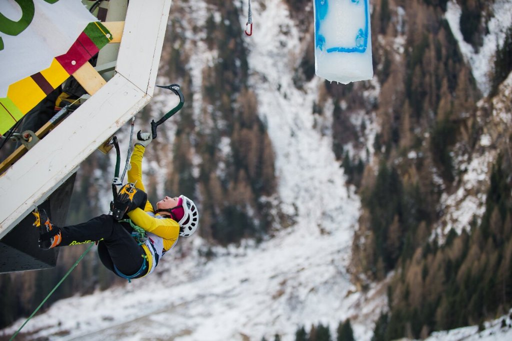 Maria Tolokonina beim Eiskletterweltcup 2017 in Rabenstein (c) Patrick Schwienbacher