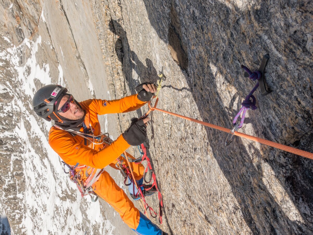 Stephan cleaned eine schwierige Seillänge, ein Abenteuer mit Hooks, Beaks und Mikrokeilen. (c) Timeline Productions