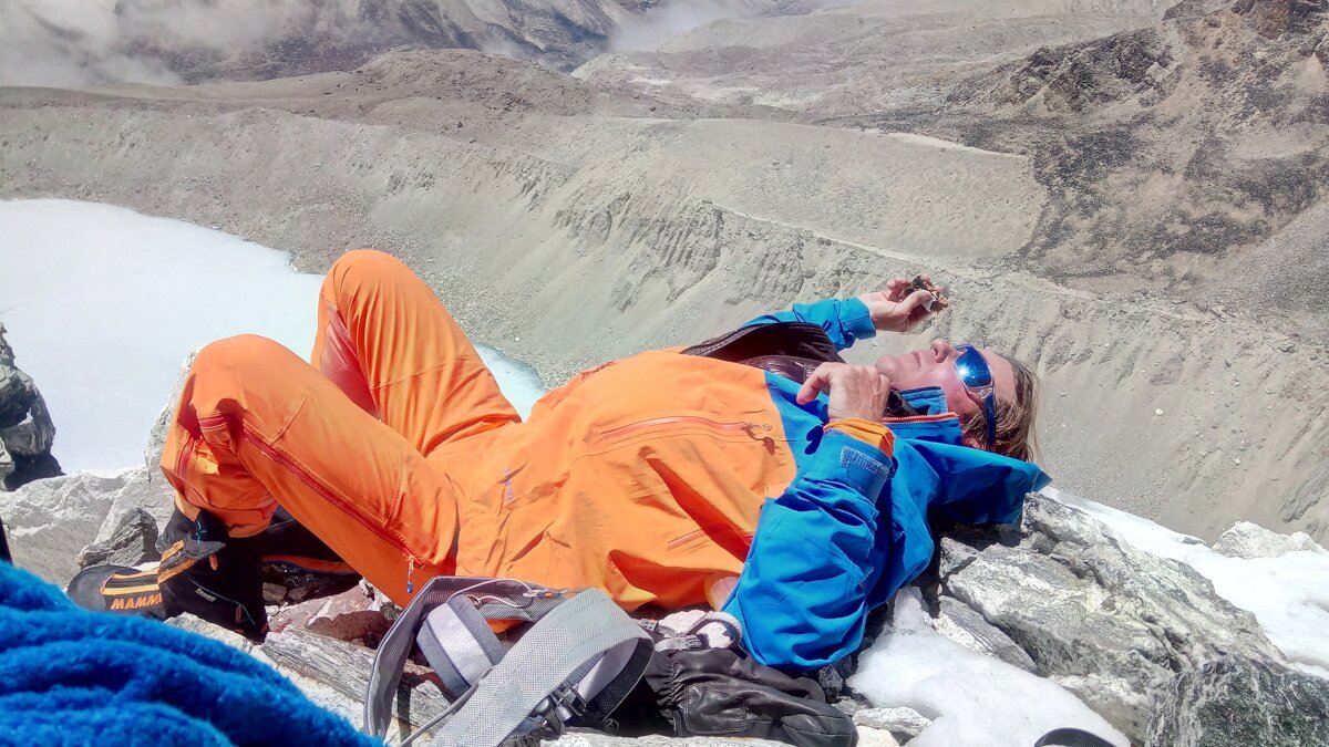 Am Tag fünf war es schliesslich soweit: um 10:00 Uhr passierten Marek und Zdeněk den Hauptgipfel. Belohnt wurden sie mit einer atemberaubenden Aussicht: «Vom Osten her winkte uns der Kangchendzönga zu, im Norden grinste der pyramidenförmige Makalu. Im Westen ragten der Wall von Lhotse und einige Gipfel des Nuptse hoch. Über all dem wachte das Dach der Welt, der Mount Everest.»