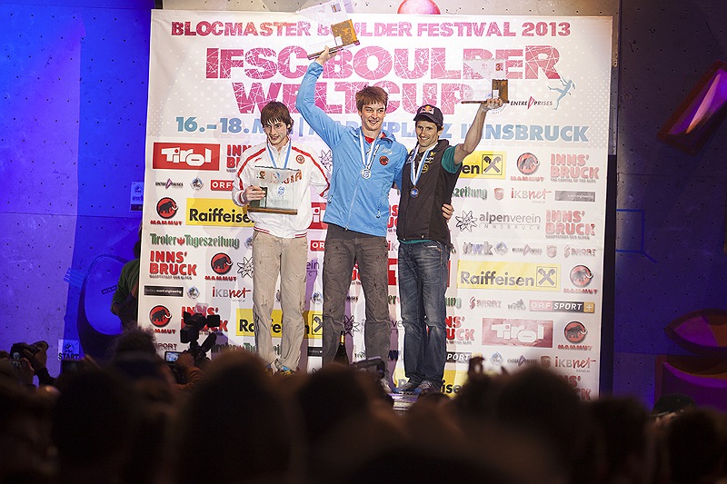 Bei den Herren gelingt es Österreichs Kilian Fischhuber als einzigem Athleten, drei der insgesamt vier Final-Boulder zu flashen (Top im ersten Versuch), eine Nullrunde an Problem Nummer drei (kein Top, kein Bonus) bedeutet im Endresultat Rang drei für den Vorjahressieger. Gold geht an Deutschlands neuen starken Mann Jan Hojer, Weltmeister Dmitrii Sharafutdinov (RUS) holt sich mit Platz zwei in Innsbruck seinen vierten Stockerplatz der Saison.