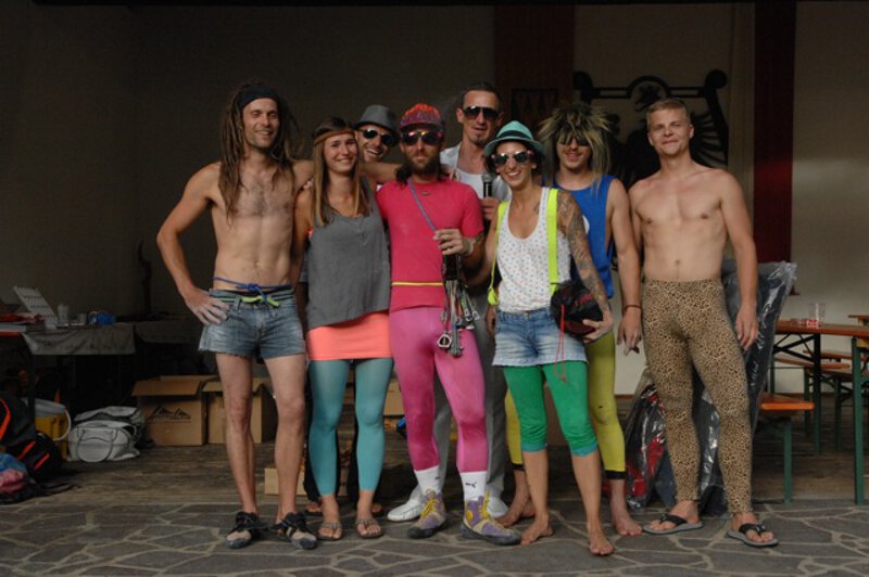 Zum 10jährigen Jubiläum hat sich die Klettergruppe noch ein weiteres Motto ausgesucht, damit es in diesem Jahr auch ganz schön bunt wird: RETRO. Dazu muss nichts weiteres hinzugefügt werden, denn die Bilder aus diesem Jahr sagen alles. Das Wetter in Flirsch am Arlberg war wiedermal supersonnig, und wieder einmal war es kein Problem die gesponserten Hopfen & Malzgetränke aus der fränkischen Schweiz aufzubrauchen. Ein herzliches DANKE SCHÖN an dieser Stelle gleich an Carsten Seidel von der Firma Entre Prises, ein langjährigen Gönner und Sponsor dieser Veranstaltung.