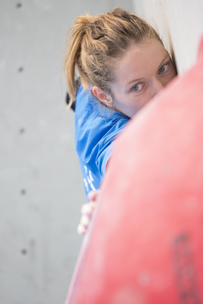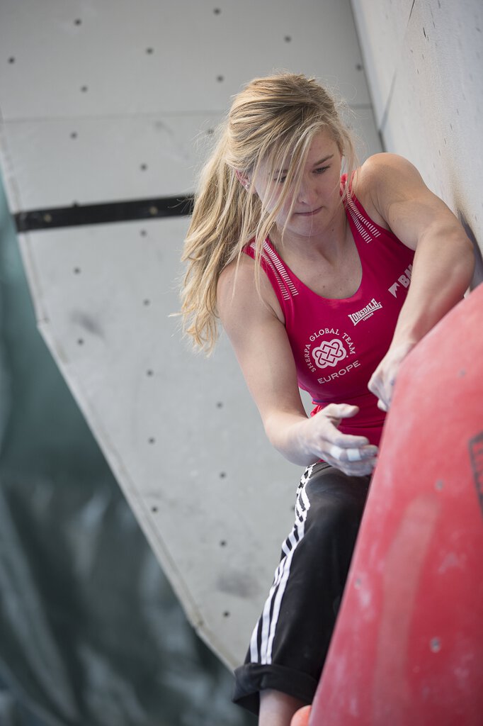 Dritter Stockerlplatz der Saison für Anna Stöhr Dramaturgisch perfekt gestaltete sich auch der Verlauf des Damenfinales: Nach einer Nullrunde zur Finaleröffnung toppt Lokalmatadorin Anna Stöhr die Boulder Nummer zwei und drei in jeweils drei Versuchen und kommt Grindelwald-Siegerin Shauna Coxsey und der möglichen Goldmedaille noch einmal zum Greifen nah.
