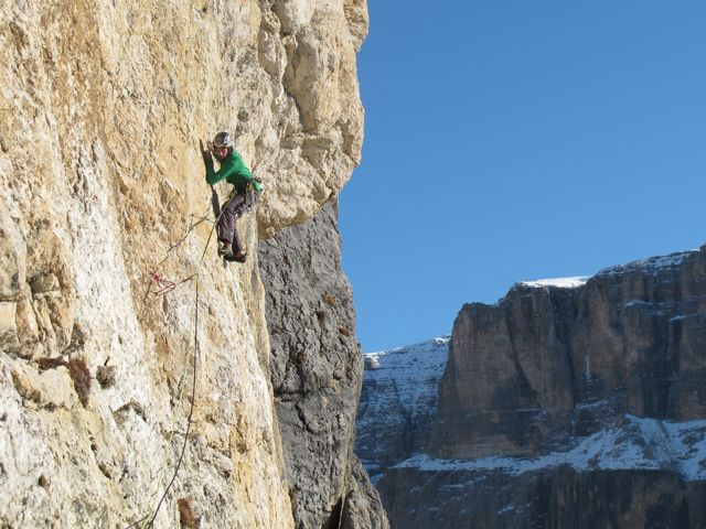 Immer wieder versuchten sich Seilschaften am Wandabschnitt zwischen "Via Italia 61" und der "Zeni Verschneidung" und immer wieder scheiterten sie am ersten Dach.