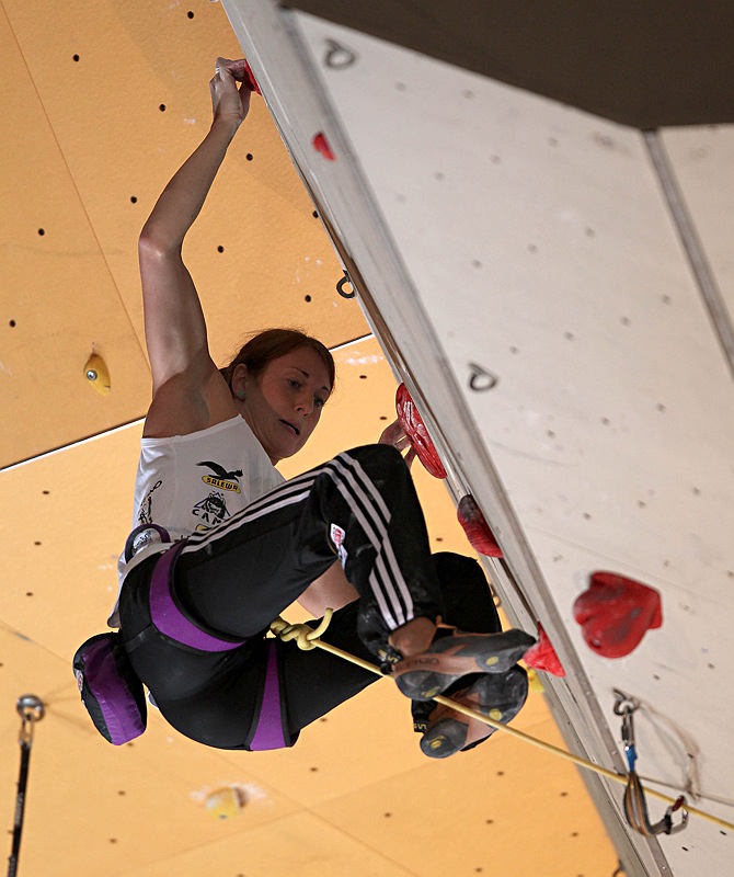 A few minutes earlier Russia's Evgenia Malamid had fallen slightly lower after having battled all the way through from the Open, putting on a beautiful performance which warmed many a climber's heart. Just below her is where an amazing Jenny Lavarda left the stage: climbing better and more focussed than ever before, Lavarda's ascent made the Climbing Stadium tremble with excitement. Now though it was time for her, the last out in this women's final: Queen Angela…