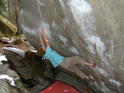 Der fränkische Youngster Felix Knaub war kürzlich für ein paar Tage zum Bouldern im Tessin. Dort konnte er gleich am ersten Tag „Rain dogs“ (8a) wiederholen. Am zweiten Tag folgte nach dem Aufwärmen ein Flash des Boulders „The real shield“ (7c) und am Nachmittag das „Willenberg Dach“ (8a). Nach einem Ruhetag machte er zwei Erstbegehungen im Sector Paese. Er nannte die Boulder „Sonnenscheu“ und „Fingerreisser“ und bewertete sie so um 7c+. Am nächsten Tag konnte er den Boulder „Casy Jones“ (7c) flashen. Am letzten Tag machten wir noch einen Zwischenstopp im Averstal, wo Felix die Traverse „Down under“ (8a/8a+) im ersten Versuch klettern konnte. |