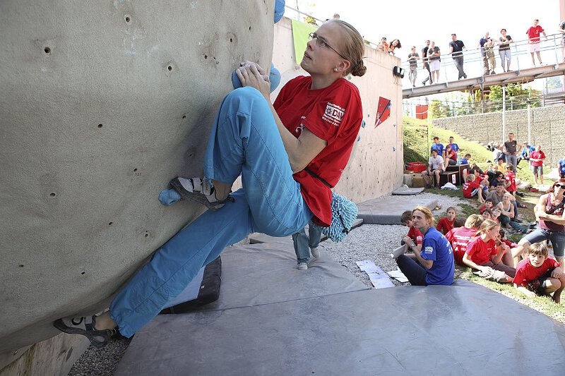 Die erst 10 jährige Romy Fuchs stellte ihr außergewöhnliches Talent unter Beweis (sie führte nach der Quali) und machte verdient Platz 2. Leonie Lochner kam in der Traverse genau so weit wie Romy, aber auf Grund des schlechteren Punktestandes in der Quali mußte sie sich mit dem 3. Rang zufrieden geben. Laura Amon wurde nach einem Superfinale mit der gleichauf liegenden Laura Mühlbauer auf der Slackline Gilchinger Meisterin.