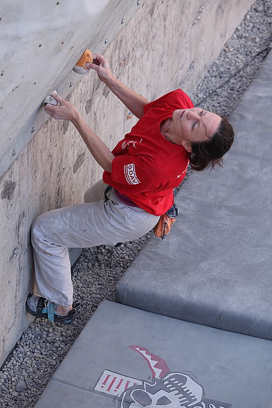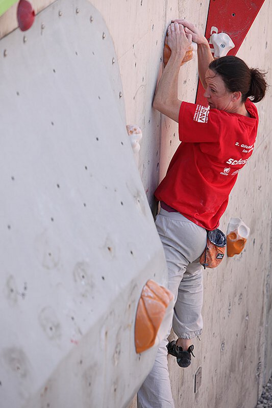 Ein erstklassiges Schrauberteam, hatte vielfältige Routen und Boulder zu bieten. „Kochelassel“ Jakub Kunc spielte sein ganzes Können aus und zauberte fordernde Routen an die große Wettkampfwand. Tip: Es lohnt sich (wieder) nach Gilching zu kommen und die Kunc-Routen auszuchecken und zu projektieren. Moni Retschy (bayerische Bouldermeisterin), Bouldercrack Thomas „Tomtom“ Lindinger und der Verfasser dieser Zeilen präsentierten abwechslungsreiche, „tricky“ Boulderprobleme.