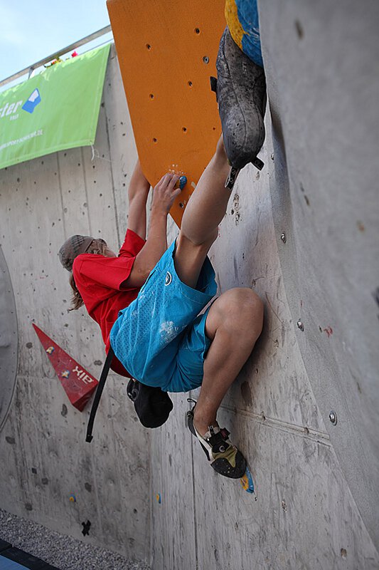 Ein erstklassiges Schrauberteam, hatte vielfältige Routen und Boulder zu bieten. „Kochelassel“ Jakub Kunc spielte sein ganzes Können aus und zauberte fordernde Routen an die große Wettkampfwand. Tip: Es lohnt sich (wieder) nach Gilching zu kommen und die Kunc-Routen auszuchecken und zu projektieren. Moni Retschy (bayerische Bouldermeisterin), Bouldercrack Thomas „Tomtom“ Lindinger und der Verfasser dieser Zeilen präsentierten abwechslungsreiche, „tricky“ Boulderprobleme.