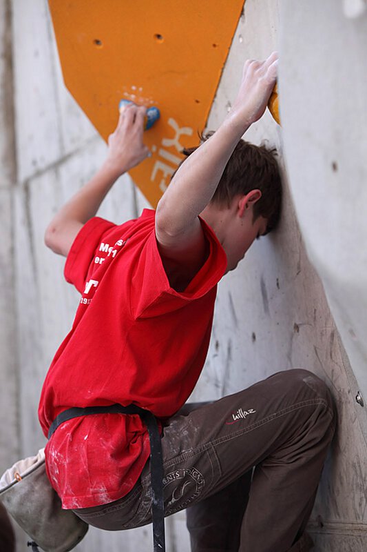 Im High-Jump-Finale (wer springt am höchsten an der Wand) überraschte Simon Lang die Zuschauer, als er als kleinster Finalist mit Straßenschuhen (!) gegen einige ganz lange und starke Jungs antrat und… gewann! Bester bei den Klimmzügen wurde Cornelius Dier. Veranstalter der Gilchinger Meisterschaft ist die DAV-Sektion München mit Unterstützung der DAV-Sektion Oberland und dem Kletterzentrum Gilching. Preise über 3000,- steuerten das Sporthaus Schuster, Mammut und der Martin Lochner Verlag bei (vielen Dank!).