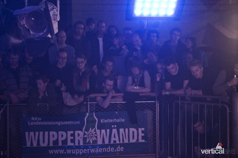 Die Wupperwände bebten, als über 700 Zuschauer Stefan Danker vom Team Boulderwelt München die stark überhängende Wand des letzten Boulders hoch peitschten. Mit der rechten Hand erreicht er als erster und einziger den Topgriff und … rutscht ab.