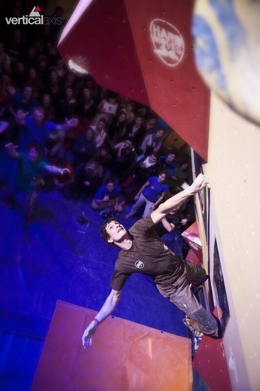So kämpfte Christoph Gabrysch vom Team Camp4 Zweibrücken an dem aus vier frei schwingenden Elementen bestehenden Hangel-Boulder bis zum letzten Zug am absoluten Limit. Eine Performance, welche die Zuschauer zur Raserei brachte und die bis auf den letzten Platz ausverkaufte Halle mit purem Adrenalin füllte.