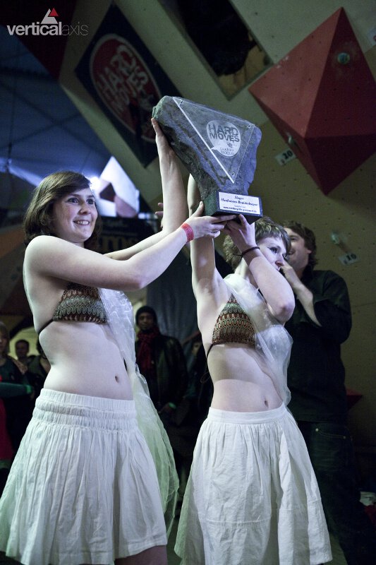 Angetrieben vom Teamgedanken gingen die Kletterer weit über ihre Kräfte hinaus und zeigten Moves jenseits von physikalischen und physischen Grenzen. Wie Lokalmatadorin Jule Wurm und Julia Winter vom Team Boulderlounge Chemnitz, die beide im zweiten Versuch am zweiten Boulder Kletterakrobatik de Luxe und Nerven aus Stahl bewiesen.