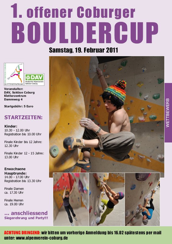 Wir freuen uns auf ZAHLREICHE Teilnehmer, es sind wirklich für JEDEN Boulder dabei.