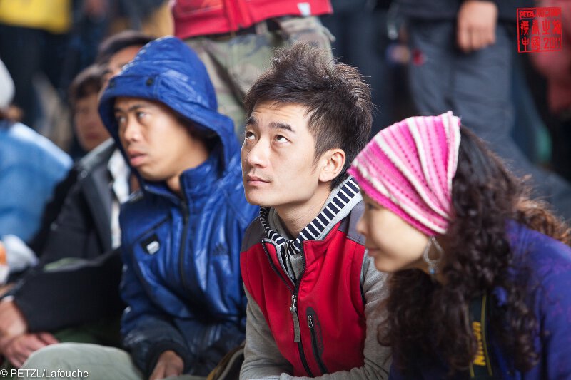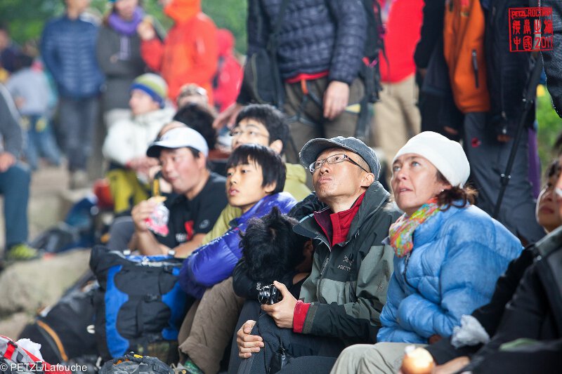 Während der dreitägigen Veranstaltung haben sich die 550 Kletterer (darunter 286 Chinesen) auf alle Sektoren verteilt, um eine maximale Zahl an Routen zu klettern und beim flash contest ein gutes Ergebnis zu erzielen! Mit Hunderten sprachloser Zuschauer am Fuße des Felsens. Die beeindruckten Geruos (Bewohner des Getu Valley) sind in großer Zahl und zum Teil von weither gekommen, um die Kletterer zu bewundern. Obwohl das Klettern für sie nichts Neues ist, ganz im Gegenteil. Es war eine uralte Tradition der Miao, die Felswände empor zu klettern und hoch oben die Körper ihrer Verstorbenen abzulegen, um sie vor den Raubvögeln zu schützen und die Heimkehr der Körper zu ermöglichen.