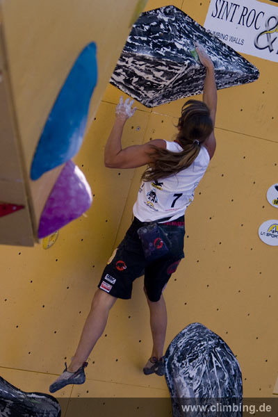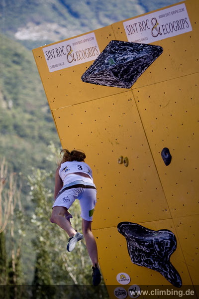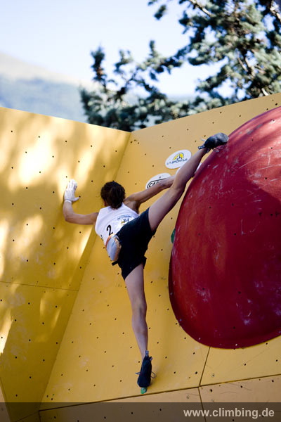 Im KO-Modus überstanden Fischhuber und Baumann sowie Gabriele Moroni (I) die ersten drei Boulder, bevor die letzten Drei der ehemals acht Starter am letzten Boulder den Sieg unter sich ausmachten.