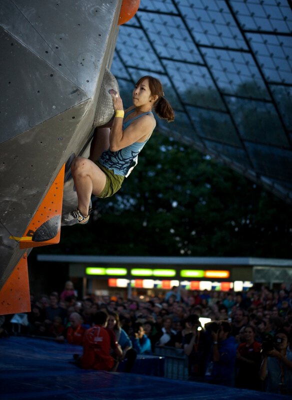 Zwar war die Japanerin wegen ihrer geringen Körpergröße mehrmals klar im Nachteil. Umso beeinduckender war anzuschauen, wie sie alternative Lösungen fand und alle Boulder auf Anhieb konsequent bis zum Topgriff kletterte.