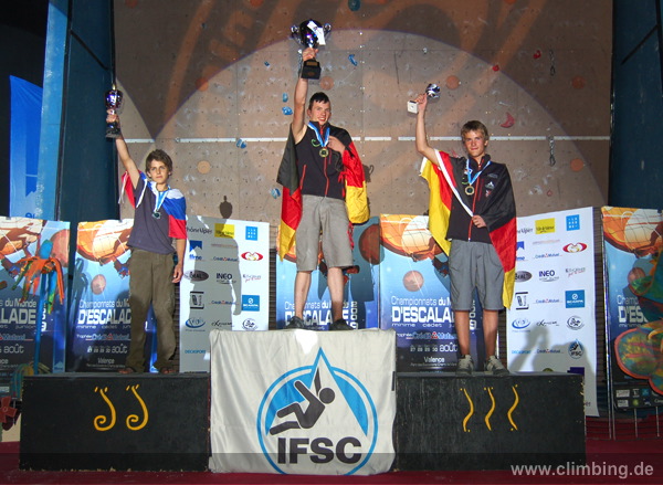 Die weibliche A-Jugend lief komplett ohne deutsche Beteiligung ab – hier holte sich die Schweizerin Katherine Choong ihren ersten großen Titel. Harte Konkurrenz gab es für die DAV-Starter bei der männlichen A-Jugend: Mit dem Tschechen Adam Ondra, der kurz zuvor erst den Senioren-Weltcup in Imst gewonnen hatte, startete der Über-Favorit, an dessen Sieg kaum einer zweifelte. Umso stärker die Leistung des Erlangener Alexander Megos, der wie Ondra alle Routen bis zum Halbfinale sicher toppen konnte und damit locker ins Finale einzog.