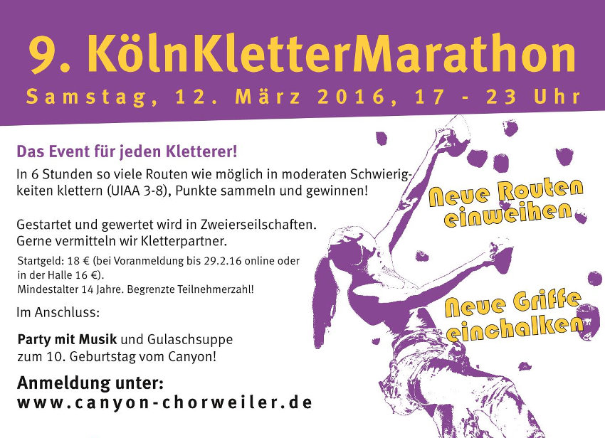 Start 9. KölnKletterMarathon im Canyon Chorweiler und 10 Jahre Canyon Chorweiler 9. KölnKletterMarathon im Canyon Chorweiler und 10 Jahre Canyon Chorweiler (c) Canyon Chorweiler