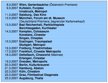 Die „Am Limit“-Kinotour mit den Huberbuam und Pepe Danquart im CineStar Erlangen am Sonntag, dem 18. März: Um 20.00 Uhr „Am Limit“-Vorabpremiere. Im Anschluss Presseinterviews und mehr … Alexander und Thomas Huber – die“Huberbuam“ – zählen zu den weltbesten Extrem- und Alpinkletterern unserer Zeit. Oscar®-Preisträger Pepe Danquart ist mit den beiden Brüdern auf Tour ins Yosemite Valley und nach Patagonien gegangen. Die Kamera folgt den Kletterern in bisher nie gefilmte Höhen und begleitet sie bei dem Versuch, den Rekord im Speedklettern an der „Nose“, der 1.000 Meter hohen Granitwand des „El Capitan“ im Yosemite Nationalpark (Kalifornien/USA) zu brechen. Am Sonntag, den 18. März werden der Regisseur und die Huber-Brüder den Weltrekordversuch am „El Capitan“ im kalifornischen Nationalpark Yosemite in dem atemberaubenden Dokumentarfilm „Am Limit“ den Kinobesuchern schon vor dem offiziellen Kinostart am 22.03. im CineStar Erlangen höchstpersönlich vorstellen. „Am Limit“ zeigt atemberaubende, spannende Bilder an der Grenze des physisch und psychisch Machbaren. „Am Limit“ ist das Abenteuer zweier Brüder, die seit frühester Kindheit in den Bergen zu Hause sind und die Grenzerfahrung suchen: Alexander und Thomas Huber, zwei Menschen, die bis ans Äußerste gehen, getrieben vom unbändigen Willen, ihre Grenzen und Ängste zu überwinden und die damit verbundenen Herausforderungen anzunehmen. Zwei Brüder auf der Suche nach dem eigenen Limit. Nach Heimspiel (2000, Deutscher Filmpreis für Beste Regie) und Höllentour (2004) bildet „Am Limit“ den letzten Teil von Pepe Danquarts Sport-Trilogie, bei der es auf den ersten Blick um Sport geht, auf den zweiten Blick aber um die menschliche Seite der Athleten. CineStar – Der Filmpalast in Erlangen lädt Sie ein, die „Helden der Berge“ in atemberaubenden Bildern aus nie gefilmten Höhen zu begleiten. Am 18. März gehen zwei Brüder ans Äußerste und überwinden mit reiner Willenskraft eigene Ängste und Grenzen. Schnuppern Sie schon einmal Bergluft in unserem Kinofoyer, das von „Avalanche – Ausrüstung für unterwegs“ passend zum Thema gestaltet wird. Lassen Sie sich von diesem beeindruckenden Dokumentarfilm einstimmen, bevor die Wander- und Klettersaison wieder beginnt … Der Kartenverkauf hat begonnen! Siehe auch: |