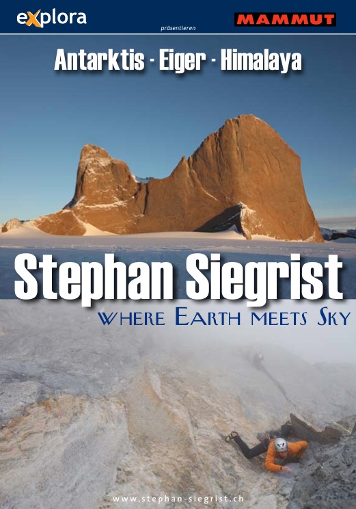 Doch auch vor der eigenen Haustür gibt es noch alpinistische Premieren. Eindrücklicher Beweis dafür ist Stephan Siegrists neuster Coup: Zusammen mit Ralf Weber und Thomas Theurillat gelang ihm im Juni 2009 die Route Magic Mushroom, am Felspilz vor der Eigernordwand als erstem Kletterer im Rotpunkt-Stil. Oben angekommen, startete Stephan Siegrist zum zweiten Teil seines Abenteuers.