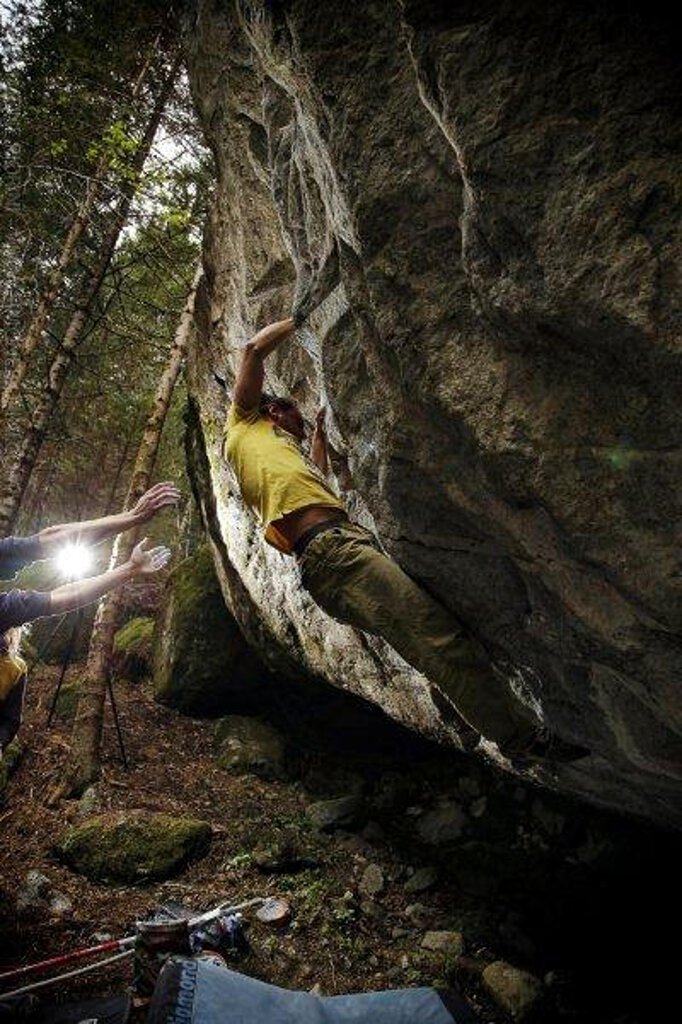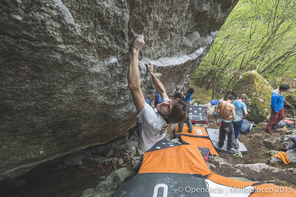 Gleich am ersten Tag, dem 30. April, zeigte sich das Val Masino von seiner schönsten Seite. Die smaragdgrünen Wiesen und Wälder leuchteten mit dem blauen Himmel um die Wette und luden ein, sich an den vielzähligen neuen Boulder-Problem von Simone Pedeferri’s Team zu probieren. So konnten viele der anwesenden Top Athleten schon zu Beginn eine recht ansehnliche Ticklist vorweisen.