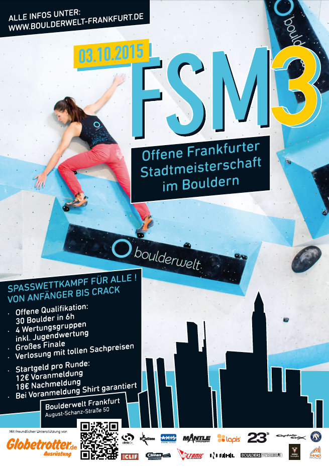 Start 3. Offene Frankfurter Stadtmeisterschaft im Bouldern am 03.10.2015 in der Boulderwelt Frankfurt 3. Offene Frankfurter Stadtmeisterschaft im Bouldern am 03.10.2015 in der Boulderwelt Frankfurt