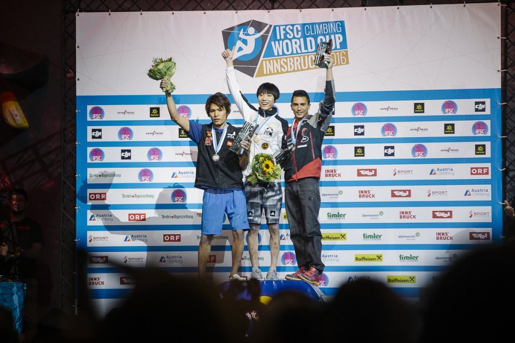 Bei den Herren geht Kanadas Allrounder Sean McColl als Führender nach dem Halbfinale in die Entscheidung und muss sich im finalen Durchgang den beiden Shootingstars Jongwon Chon (KOR) und Tomoa Narasaki aus Japan geschlagen geben – die einzigen Athleten, denen es gelingt, mehr als einen der anspruchsvollen Herrenboulder zu lösen.