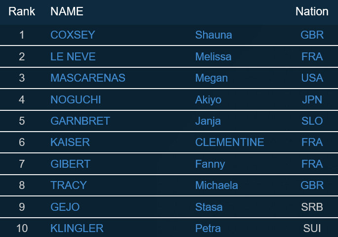 TOP 10 Damen beim Boulderweltcup 2016 in Meiringen