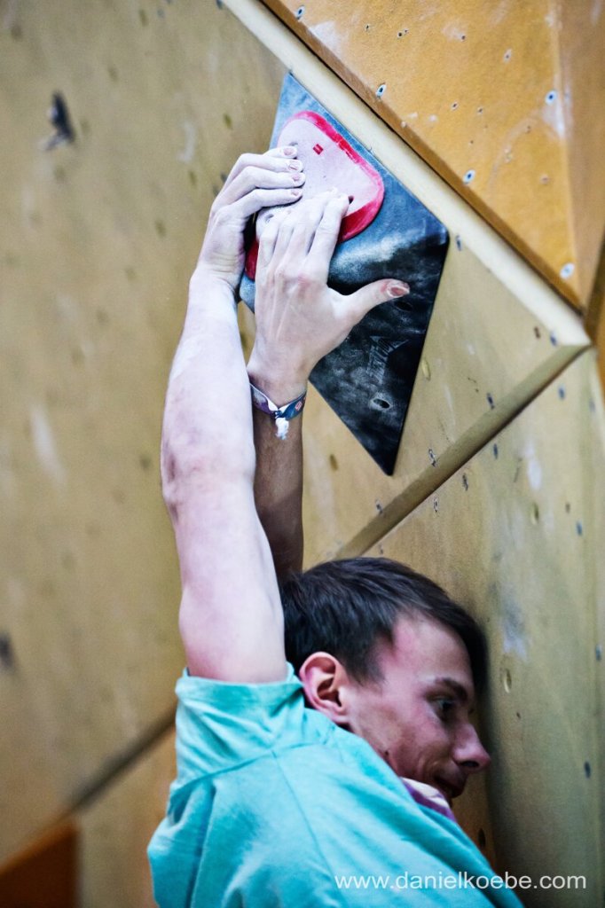 Was für ein Druck für den amtierenden Jugend-Europameister: Der 17Jährige, der schon den 6-stündigen Wettkampf hinter sich hatte und im Vorfinale 34 der 35 extrem harten Boulder toppen konnte, blieb cool und riss mit seiner Leistung schließlich alle Zuschauer von den Stühlen. Er hielt nicht nur den weiten Dynamo, sondern riskierte auch den Sprung an das Top – und hielt fest. Das Team der Hannoveraner Boulderhalle Escaladrome rutschte damit auf den zweiten Platz. Mit 50 Punkten weniger und dem besseren Ergebnis aus dem Vorfinale belegte die Boulderwelt München den 3. Platz.