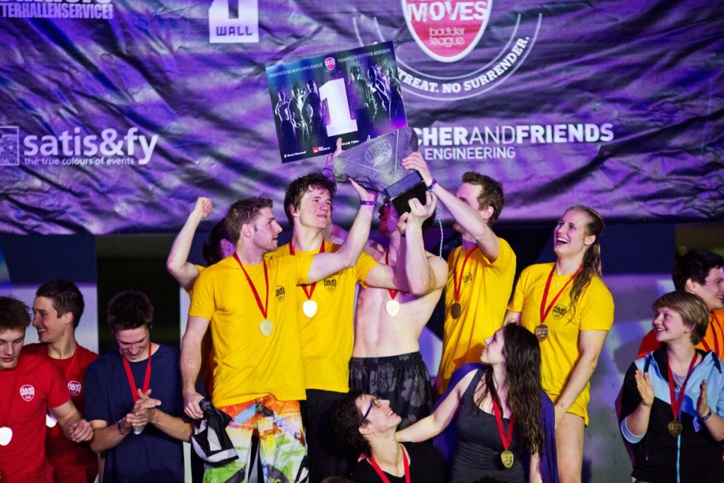 Fünf von sechs Superfinal-Teams hatten bis zum letzten Boulder die Chance zu gewinnen. Nachdem der Hannoveraner David Firnenburg in seinem letzten Versuch am letzten Boulder 80 Punkte geholt hatte und damit den Münchnern um Markus Grünebach die letzten Siegchancen genommen hatte, jubelten die Niedersachsen – sollte es endlich mit dem Sieg bei den HardMoves klappen? Nur der letzte Starter, Baptiste Ometz, konnte das noch verhindern. Wenn ihm der Sprung von der nassen Platte an die abschüssigen Griffe gelänge und er es bis zum Top schaffte, wäre der HardMoves-Neuling Blockfeld Winterthur das Siegerteam.