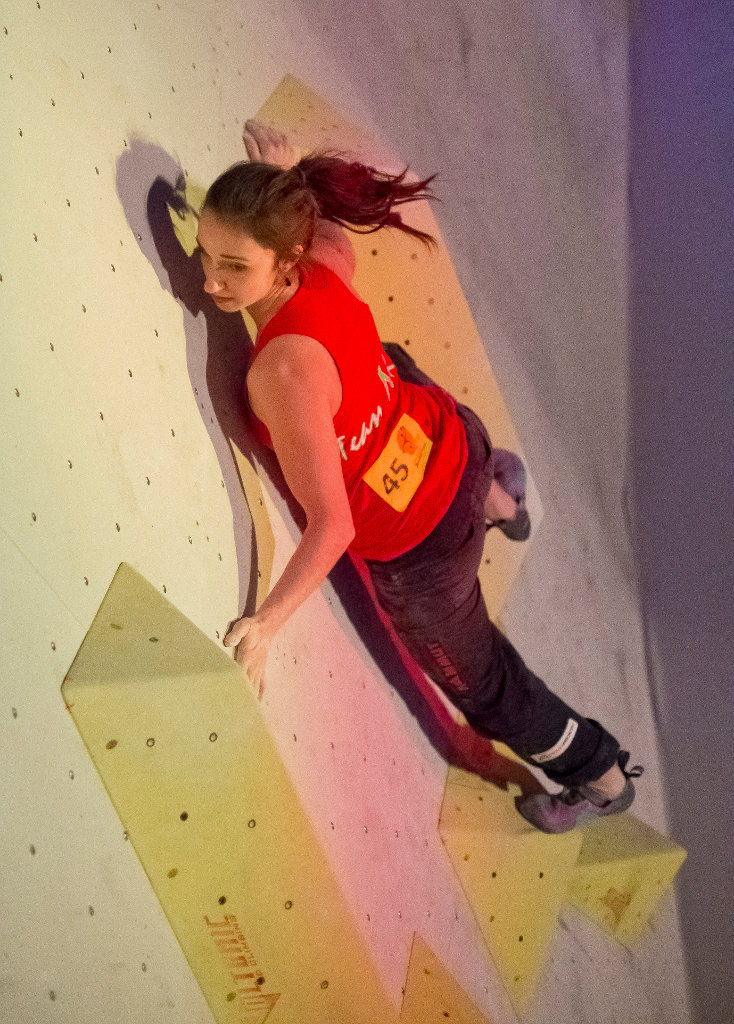 Juliane Wurm beim Deutschen Bouldercup 2015 in Köln (c) DAV Vertical-Axis