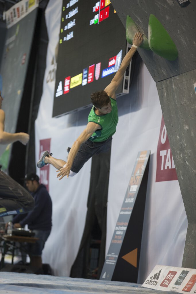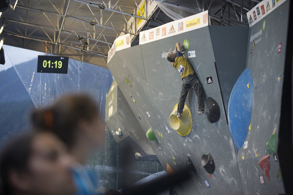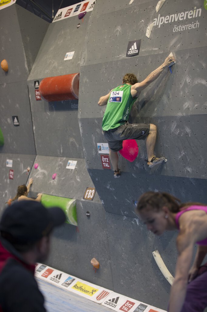 Der Weltcup-Allrounder trumpfte bereits in der Qualifikation am Samstagvormittag groß auf und zog mit acht Tops in acht Versuchen souverän ins Finale ein. Zwei weitere Flashs und insgesamt drei Tops an vier Bouldern sichern dem amtierenden Lead-Gesamtweltcupsieger (OeAV Innsbruck / TIR) Platz eins beim Austrian Boulder Open. Die weiteren Medaillenränge gehen mit Alfons Dornauer (OeAV Zillertal / TIR und Viertplatzierter nach der Qualifikation) und Lokalmatador Lukas Ennemoser (OeAV Innerötztal / TIR) an zwei weitere OeWK-Weltcup-Starter. Routinier und Wahl-Österreicher Stewart Watson bouldert mit zwei Tops im Finale auf den vierten Gesamtrang.