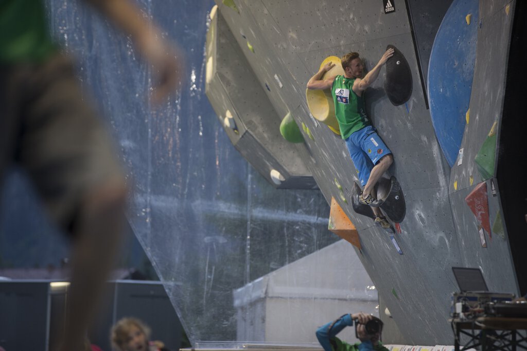 Der Weltcup-Allrounder trumpfte bereits in der Qualifikation am Samstagvormittag groß auf und zog mit acht Tops in acht Versuchen souverän ins Finale ein. Zwei weitere Flashs und insgesamt drei Tops an vier Bouldern sichern dem amtierenden Lead-Gesamtweltcupsieger (OeAV Innsbruck / TIR) Platz eins beim Austrian Boulder Open. Die weiteren Medaillenränge gehen mit Alfons Dornauer (OeAV Zillertal / TIR und Viertplatzierter nach der Qualifikation) und Lokalmatador Lukas Ennemoser (OeAV Innerötztal / TIR) an zwei weitere OeWK-Weltcup-Starter. Routinier und Wahl-Österreicher Stewart Watson bouldert mit zwei Tops im Finale auf den vierten Gesamtrang.