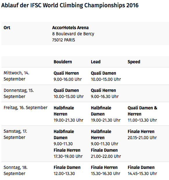 Ablauf Kletter-WM 2016