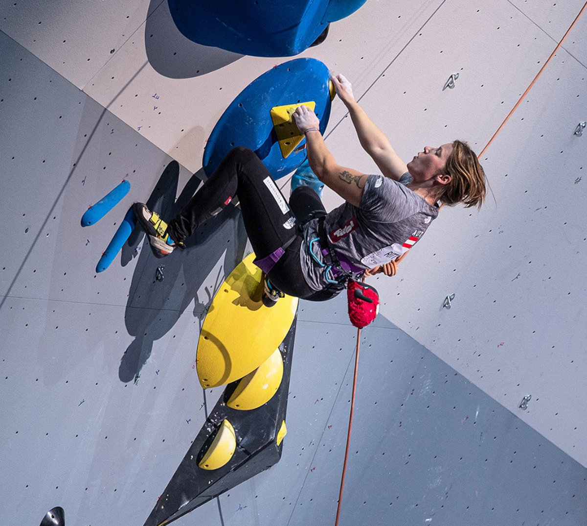 Zeller erreichte auf der Route auf der Speedwand 39+ Griffe und damit klar mehr als der zweitplatzierte US-Amerikaner Tanner Cislaw (26+).