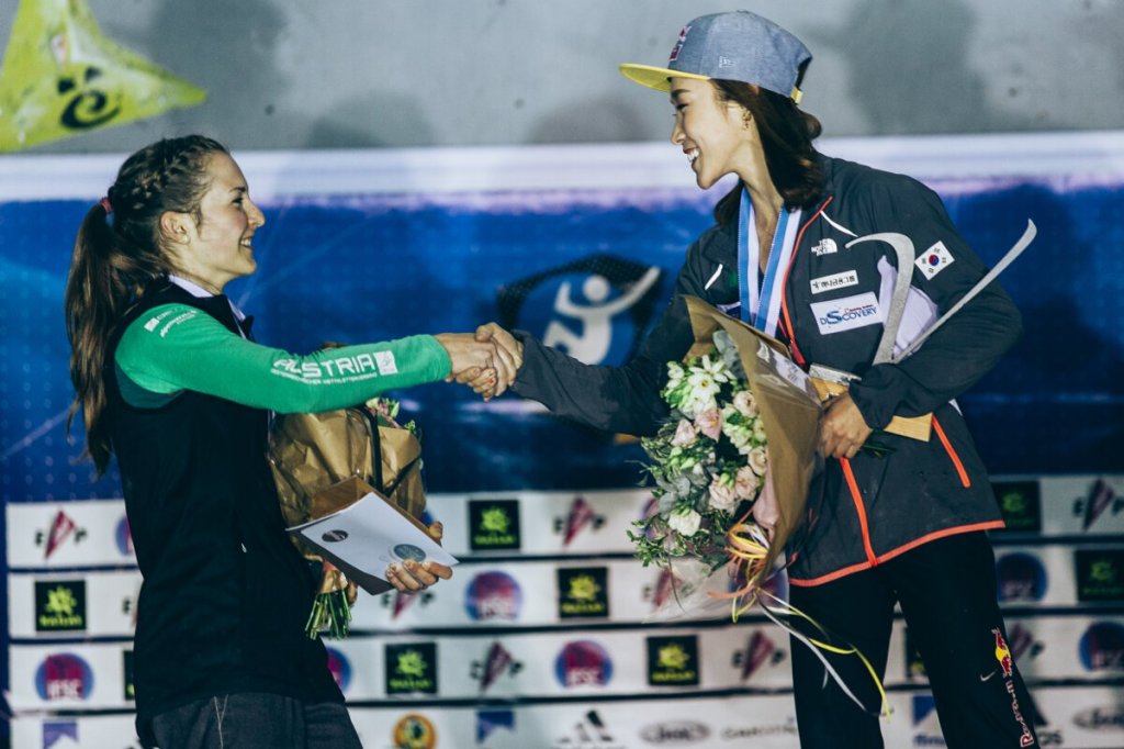 Ausgeglichen wie selten zuvor präsentierte sich das Starterfeld im Damenfinale. Acht Athletinnen aus acht verschiedenen Nationen waren hierfür qualifiziert. Die jüngste davon Jessica Pilz aus Haag/NÖ, die bereits am Freitag in der Qualifikation und im Halbfinale ihre derzeitige Topform eindrucksvoll unterstrich und auf Platz Drei hinter den beiden Topfavoritinnen Markovic (SLO) und Kim (KOR) ins Finale kletterte. Durch den verletzungsbedingten Ausfall von Markovic kletterte Pilz im Finale als Vorletzte und überzeugte einmal mehr mit ihrem entschlossenen Kletterstil.