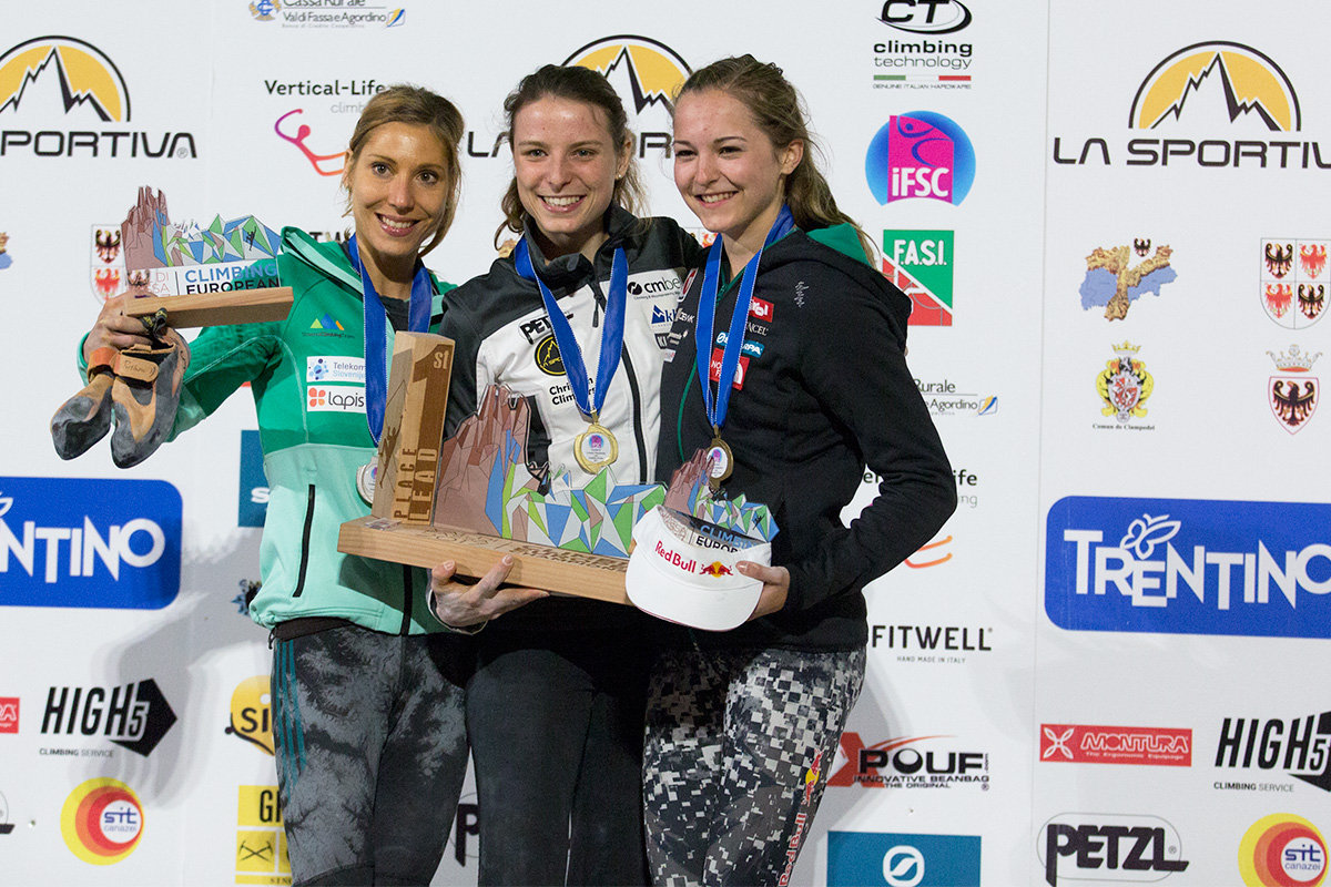 Mina Markovic, Anak Verhoeven und Jessica Pilz bei der Lead-EM 2017 (c) KVÖ / Heiko Wilhelm