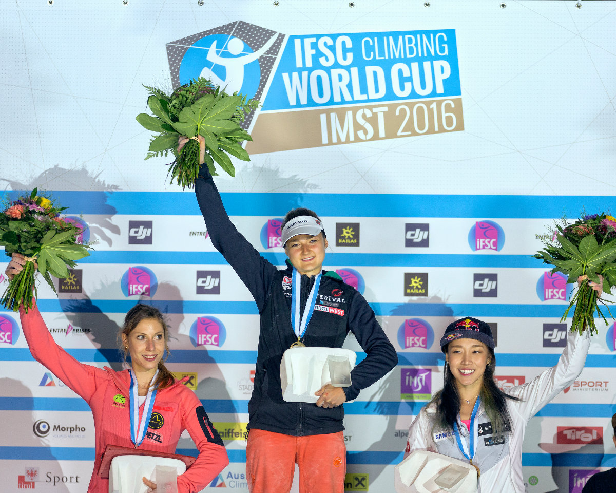 Siegerpodest Damen beim Leadweltcup 2016 in Imst (c) KVÖ/Wilhelm