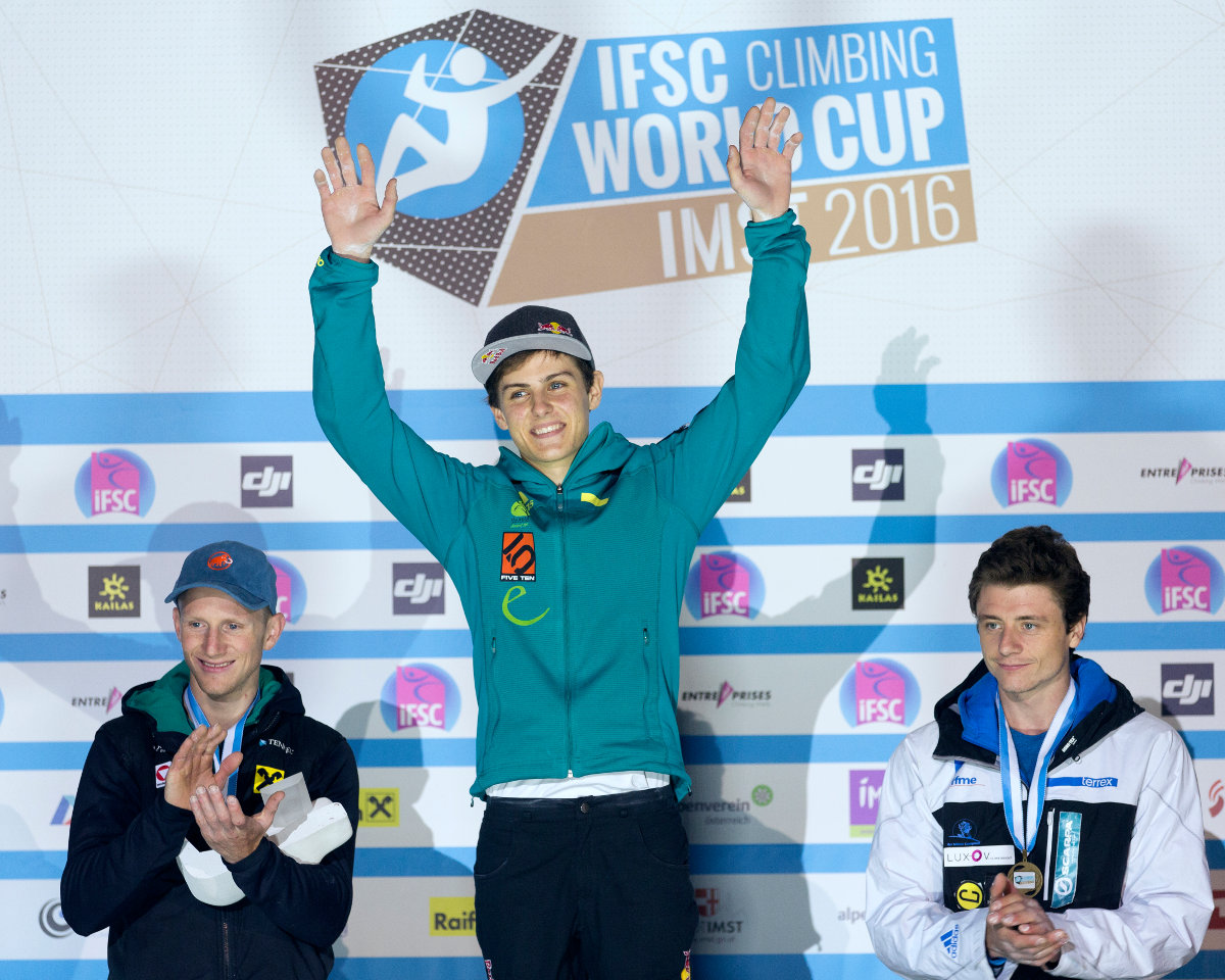 Siegerpodest Herren beim Leadweltcup 2016 in Imst (c) KVÖ/Wilhelm