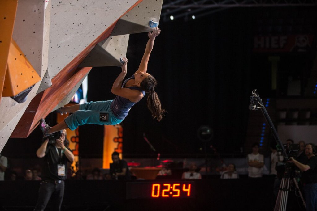 Titelverteidiger Sean McColl (CAN), erreichte sein erklärtes Ziel und schaffte mit seinem dritten Sieg nach 2012 und 2014 den Hattrick. „Als ich den ersten Cut-off in die Top 3 geschafft hatte, musste ich lachen, denn damit hatte ich auf jeden Fall zum vierten Mal in Folge einen Platz auf dem Podium sicher“, so McColl. „Es ist immer aufregend am Superboulder zu klettern. Ehrlich gesagt hatte ich keine Ahnung wie es laufen würde. Ich dachte, wir beide würden den Sprung im ersten Versuch schaffen und dass es wieder ein Rennen auf den Buzzer geben würde. Aber der Sprung war doch ziemlich schwer. Als ich dann die Reaktion des Publikums auf Reis Sturz hörte, habe ich rüber geschaut, um sicher zu gehen, dass er wirklich gestürzt ist. Mir war bewusst, dass es sehr schwer ist, an so einem Boulder aufzuholen, also habe ich mir Zeit genommen, mich entspannt und mir mehr Zeit gelassen also sonst, um das Top zu erreichen. Ich bin nicht gestürzt und das war das Entscheidende. Ich habe einfach versucht, keine Fehler zu machen und durchzukommen.“