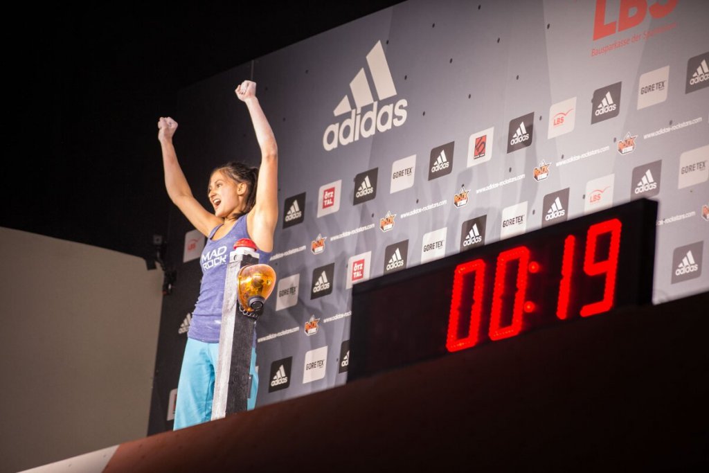 „Bei meinem ersten Versuch im Superfinale dachte ich, ich muss schnell sein, aber dann habe ich realisiert, dass der Boulder ziemlich schwer ist, es ging also eher darum ihn überhaupt zu toppen anstatt schnell zu sein“, so Megan Mascarenas. Trotz ihres jugendlichen Alters klettert die Amerikanerin bereits seit 15 Jahren, was ihre beeindruckende Stärke erklärt. „Dass ich Klettern mit jungen Augen sehe und gleichzeitig eine Menge Erfahrung habe, gibt mir eine andere Perspektive, die mir im Superfinale wirklich geholfen hat; kurz vor dem Top bin ich steckengeblieben und wusste nicht, was ich machen sollte, also beschloss ich den Top mit einem Toe-Hook zu nehmen. adidas ROCKSTARS war wirklich ganz anders als ich erwartet habe; es ist eine viel positivere Umgebung und die ganze Atmosphäre hat unglaublich viel Spaß gemacht, von dem Moment wo wir im Hotel angekommen sind bis jetzt.“