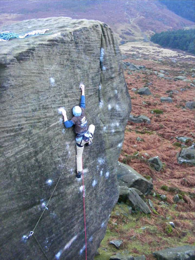 Last Saturday (the 5th January) young Pete Whittaker made the first ascent of the direct finish to Braille Trail at Burbage South. Amazingly Johnny Dawes had previously top roped the line one handed (!) and called it Grandad´s Slab Right Handed, but never returned to lead the route.