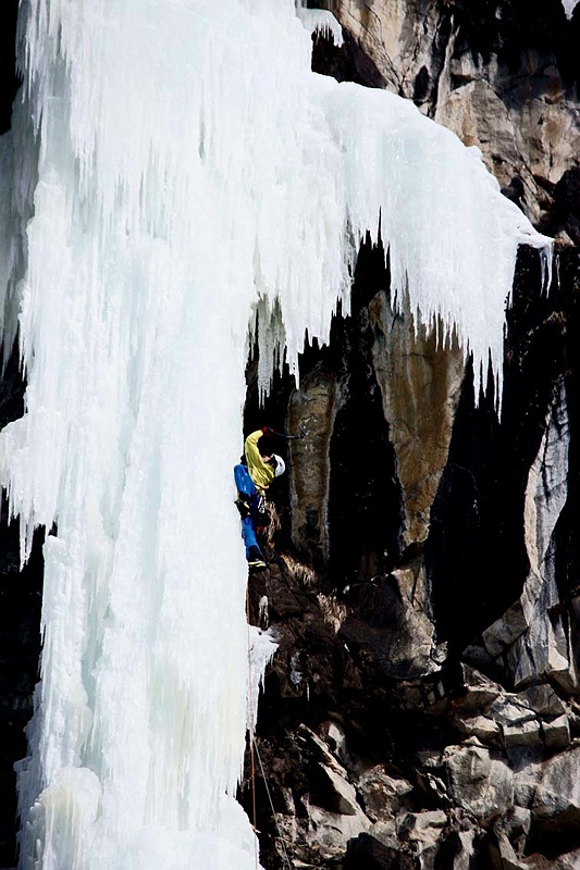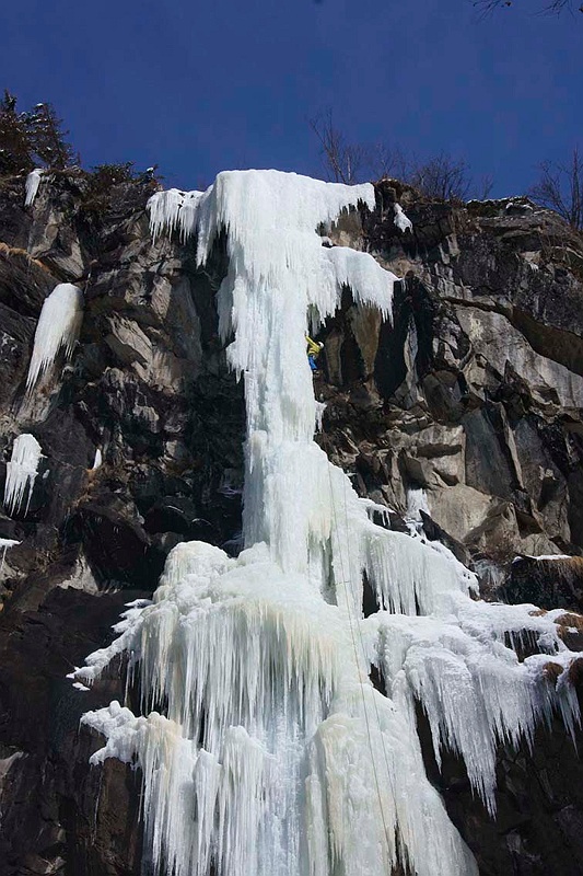 70 Meter, 60 davon sage und schreibe 90 Grad steil, mit teilweise sehr anspruchsvollen Passagen. Ein wahrhaft sagenhafter Zapfen, der seinesgleichen sucht! Ich denke, die Bilder sprechen für sich… Calimero heißt er und steht oberhalb der Häuslingarena im Zillergrund.Unser Bewertungsvorschlag: Wi6+