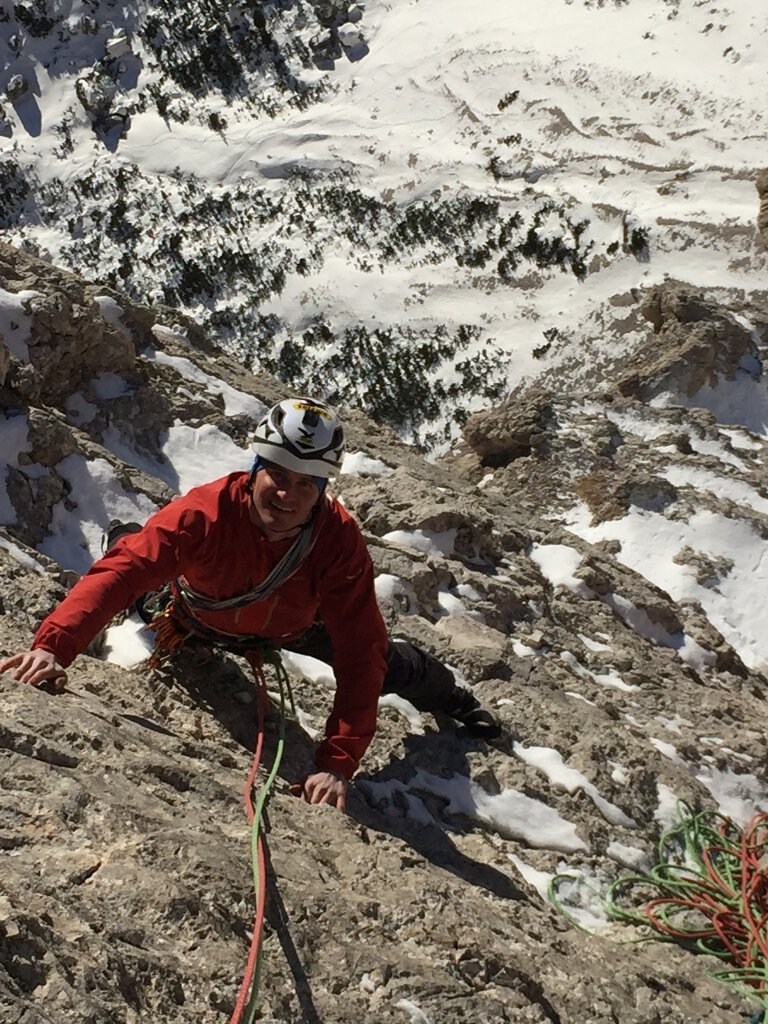 Bereits zehn Tage vor der Begehung am 17. und 18. Februar machte ich mich auf den Weg nach St. Kassian in Alta Badia um mir ein Bild von der Westwand der Cima Scotoni zu machen. Da aber immer noch viel Schnee in der Wand lag, musste mein Vorhaben, die Route „Waffenlos“ zu klettern, vorerst aufgeschoben werden. Ich fasste also die Faschingswoche für die Begehung ins Auge und der Termin mit Gerry, meinem Expeditionspartner im Jänner 2014 in Patagonien, war sogleich vereinbart.