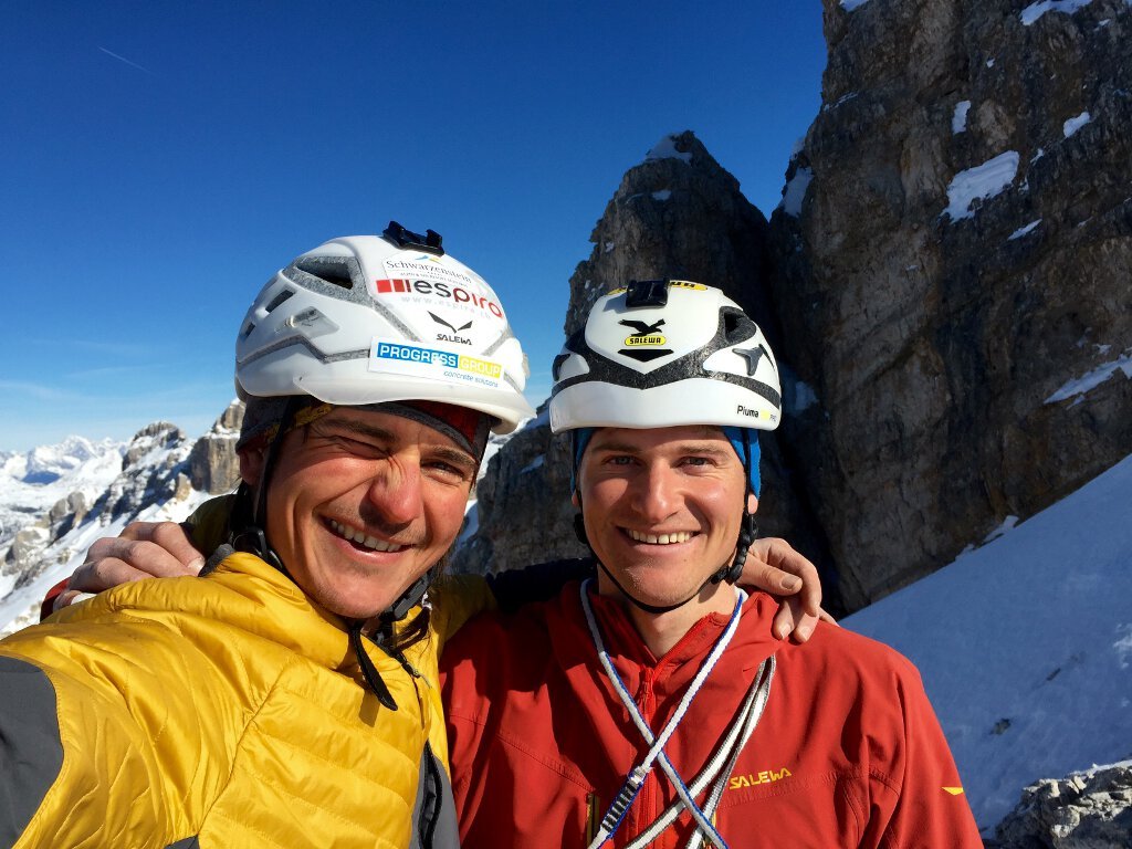 Bereits zehn Tage vor der Begehung am 17. und 18. Februar machte ich mich auf den Weg nach St. Kassian in Alta Badia um mir ein Bild von der Westwand der Cima Scotoni zu machen. Da aber immer noch viel Schnee in der Wand lag, musste mein Vorhaben, die Route „Waffenlos“ zu klettern, vorerst aufgeschoben werden. Ich fasste also die Faschingswoche für die Begehung ins Auge und der Termin mit Gerry, meinem Expeditionspartner im Jänner 2014 in Patagonien, war sogleich vereinbart.
